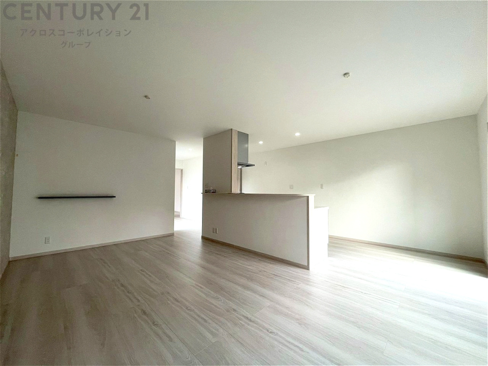 キッチン前のダイニングスペース カウンターキッチンから料理の受け渡し等に便利です。ダイニングセットを置いても十分な広さを確保。